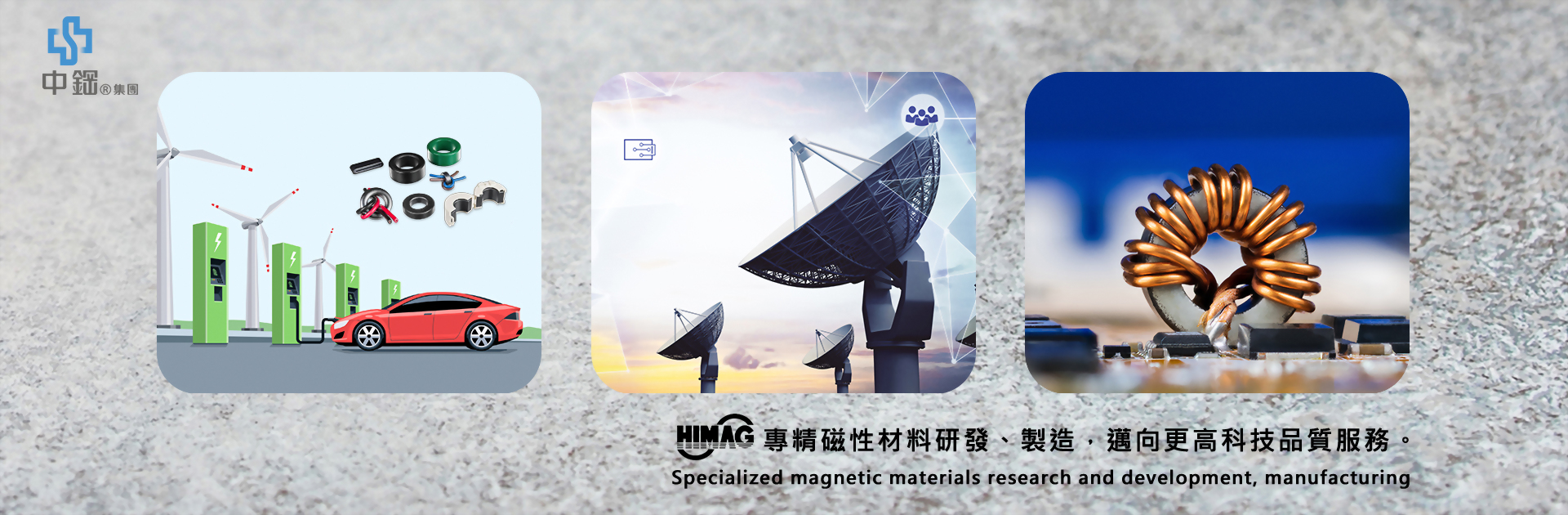 以高純度的氧化鐵粉與氧化錳粉、氧化鋅粉為原料,經由粉末冶金方法生產各式的錳鋅磁粉。可供應客戶成型、燒結加工成具有特殊電磁功能的鐵芯。